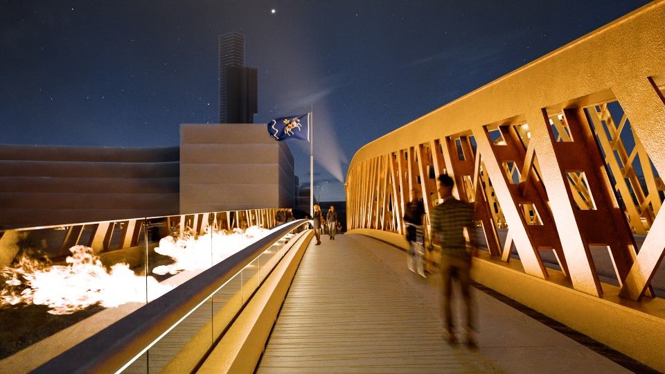 Most v Ostravě bude unikát: budou z něj šlehat plameny (vizualizace).