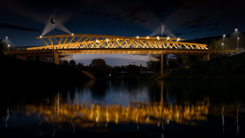 Nový ostravský most si bude hrát se světly a ohněm (vizualizace).