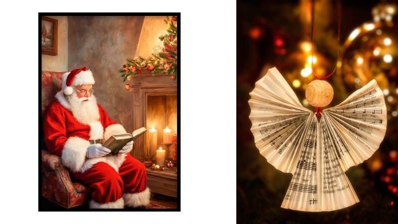 Základem vánočního interiéru knihomola je bezesporu pohodlné křeslo s dobrým osvětlením pro četbu. V kurzu jsou aktuálně klasická křesla zvaná ušáky se sametovými potahy. Na Vánoce je obzvláště vhodný tmavě zelený samet, který působí noblesně a nadčasově. Interiér pak můžete doplnit o plakát s motivy čtoucího Santa Clause nebo si podobný vygenerovat s pomocí AI a vytisknout.
