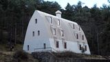 Tato chata je lehkou dřevěnou stavbou posazenou na robustní kamenné podezdívce. Dřevěný skelet je z interiéru opláštěn smrkovou biodeskou, zvenčí fasádou z opálených modřínových prken. Opálením získala prkna fasády na odolnosti a trvanlivosti, současně chatu trochu „zošklivěla“ pro nevítané hosty. V neposlední řadě ji pak propojila – byť možná trochu cynickým způsobem – s předchozí stavbou, která kdysi vyhořela…