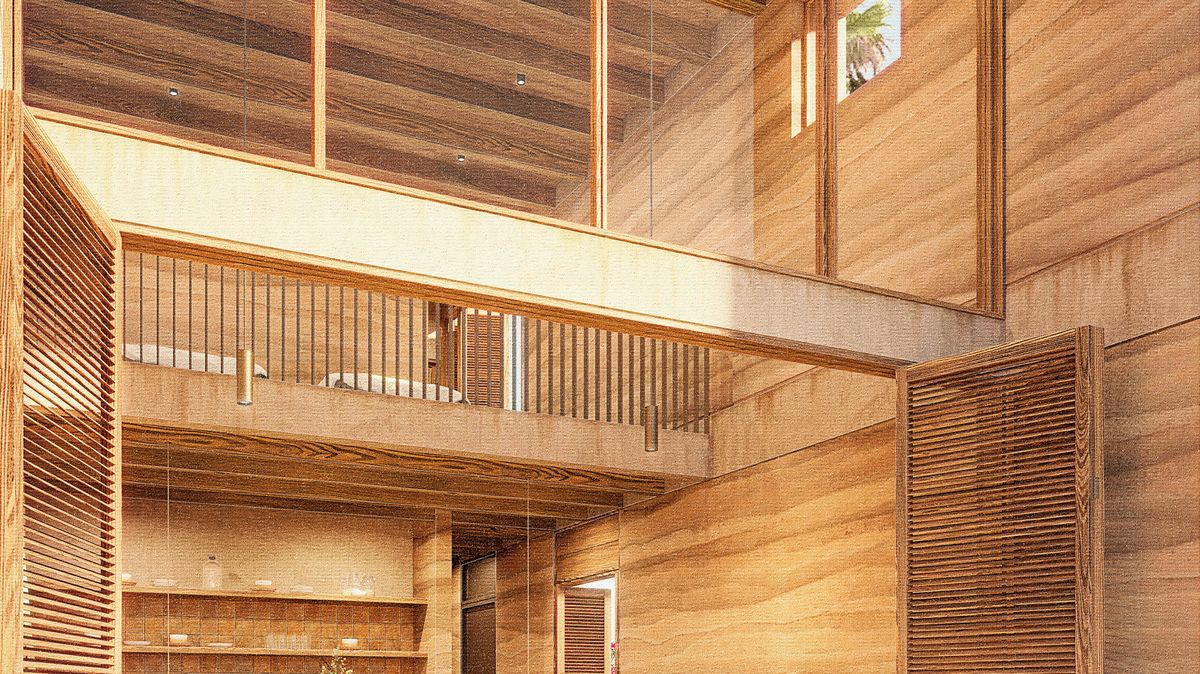 Barevná paleta vychází přímo z poloostrova Baja California Sur, na kterém letovisko Cabo San Lucas leží. Teplé, zemitě tlumené tóny odrážejí vyprahlou půdu, intenzivní světlo i syrovou krásu pobřežní pouště. Nic nepůsobí nadbytečně – spíš naopak. Dům v návrhu budí dojem, jako by tu stál odjakživa a krajina ho jen pomalu obrušovala.