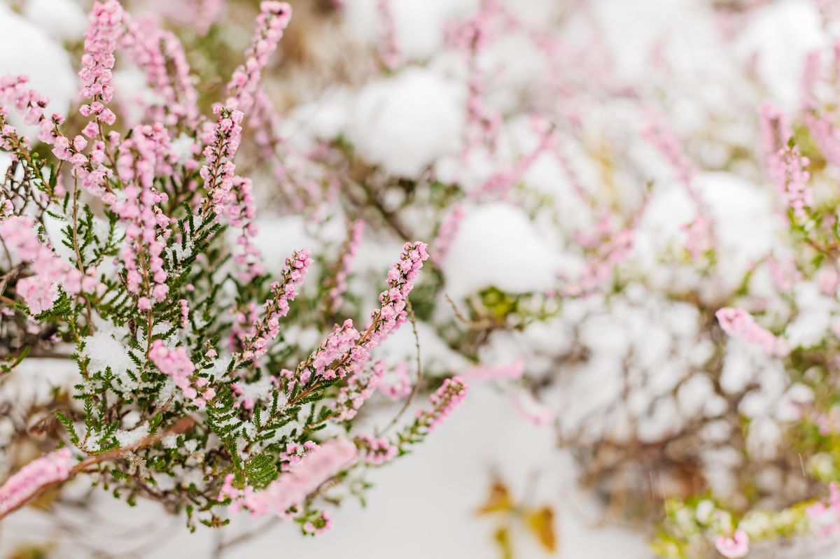 Růžové kvítky vřesovce je často možné spatřit i mezi polštáři sněhu.