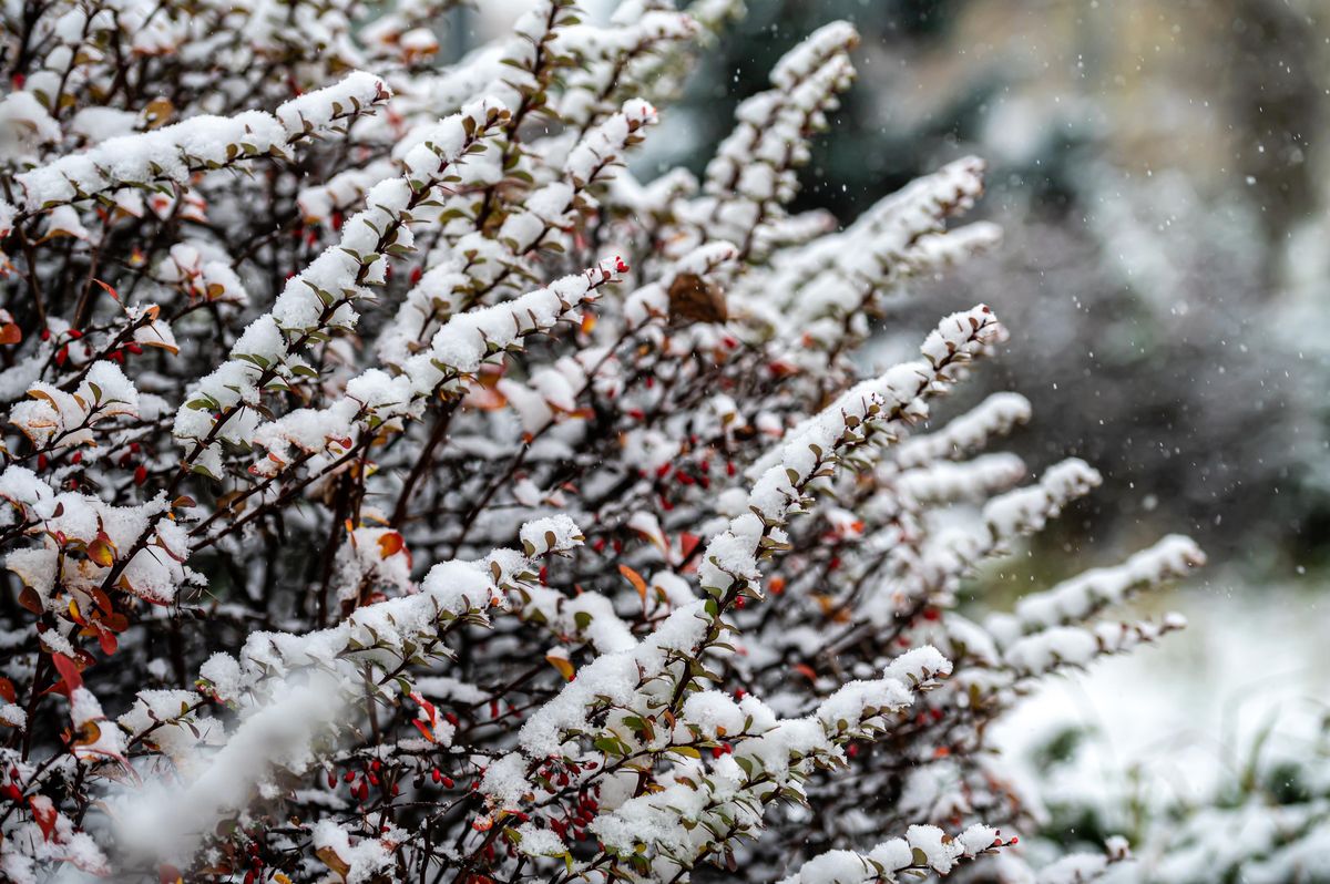 Červené bobulky dřišťálu ve sněhové nadílce doslova září.
