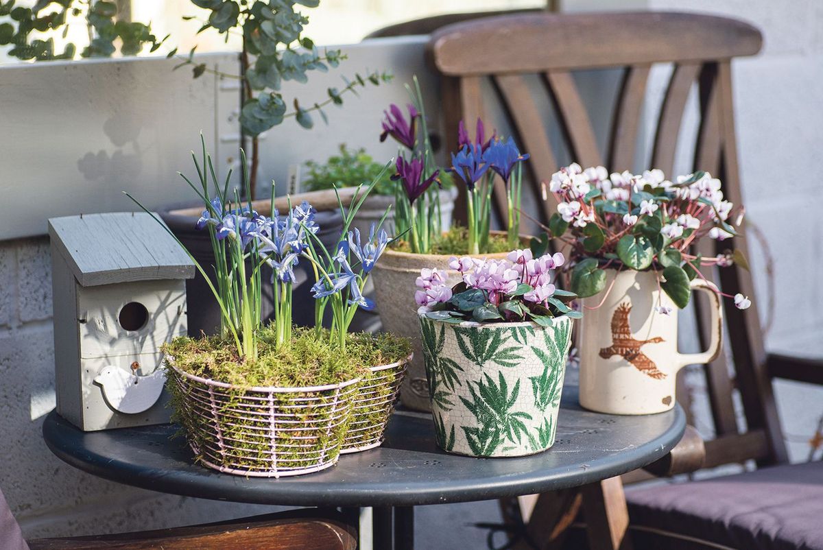 Staré moudro „kdo šetří, má za tři“ platí v případě, že si pořídíte výpěstky ze sadbovačů. Prodávají se tak třeba kosatečky či bramboříky. Tito trpaslíci mají ohromnou schopnost přitahovat pohledy, ale ohýbat se k nim až k zemi se každému nechce. Nechte tedy stolek na terase, ať hostí květinovou scénku a vynáší krásu detailů do vyšších sfér.