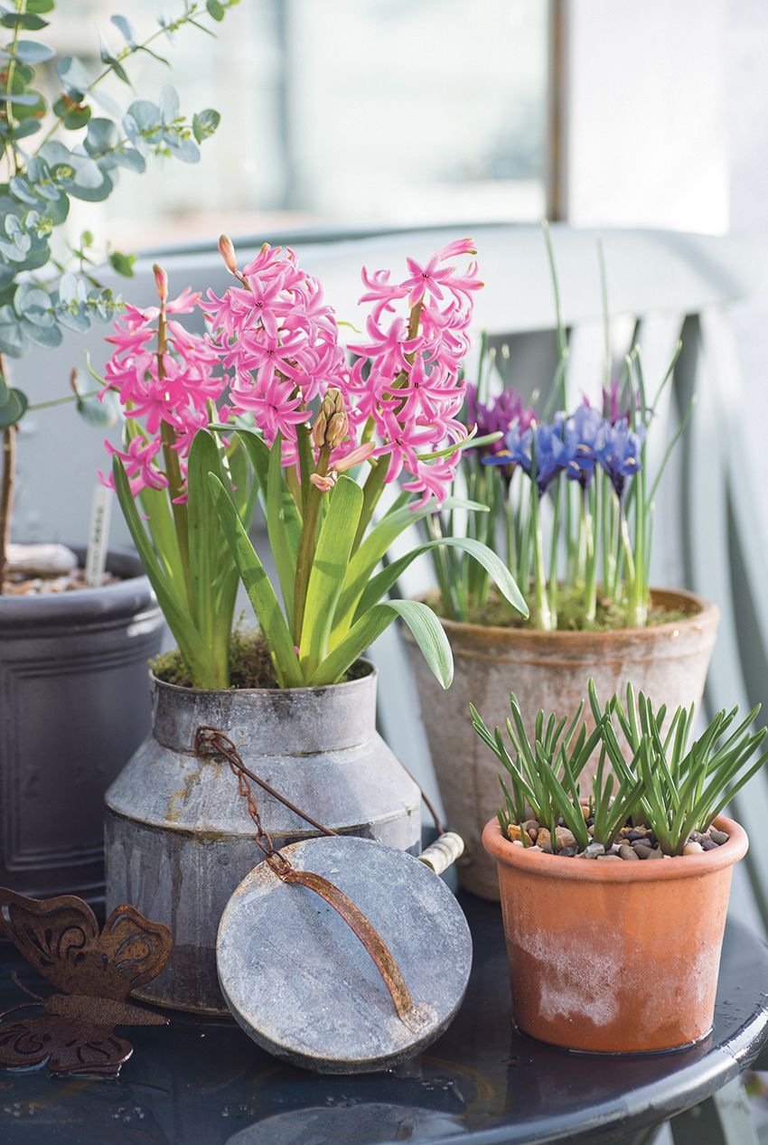 Po nákupní smršti se na mysl vloudí otázka, kam se všemi těmi petrklíči, kosatečky, bramboříky a maceškami, které spolu s rychlenými narcisy a řebčíky převzaly štafetu od sněženek a šafránů a jsou připravené k výsadbě. Odpověď je jednoduchá – do hezkého květináče na správné místo. Přitažlivě osázené nádoby velikosti XL po obou stranách vstupních dveří do domu dají šmrnc celé předzahrádce. Při aranžování většího počtu menších květináčů budete potřebovat výtvarný cit, chcete-li doladit dojem jednotnosti s prvky z okolí. Když je sestava z nádob typu „každý pes, jiná ves“, můžete ji opticky sjednotit pomocí stejných či barevně sladěných rostlin.