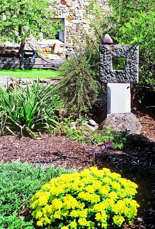 Je logické, že dva výtvarníci využijí zahradu i jako venkovní galerii. „Plastik zde bylo poměrně hodně, i japonské lampy, vše keramika vlastní výroby. Bohužel se ale našli jedinci, kteří neváhali přelézt třímetrový plot a ukrást nám i oblázky,“ říká výtvarník. Některé plastiky zde zbyly, nové už majitelé nedoplňují.