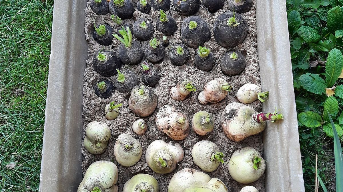 Máme-li více kořenové zeleniny, uložíme ji do sklepa, chladné garáže nebo podobných prostor v bedničkách zasypanou rašelinou, hoblinami nebo pískem. Tento materiál udržujeme mírně vlhký. Při sklizni ale kořeny přebereme. Část jistě zpracujeme hned, část uložíme.