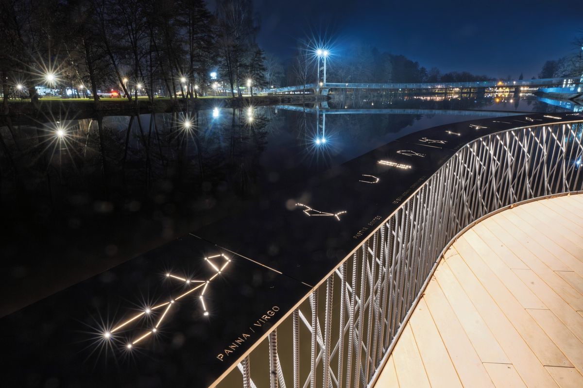 Na zábradlí mola jsou souhvězdí.