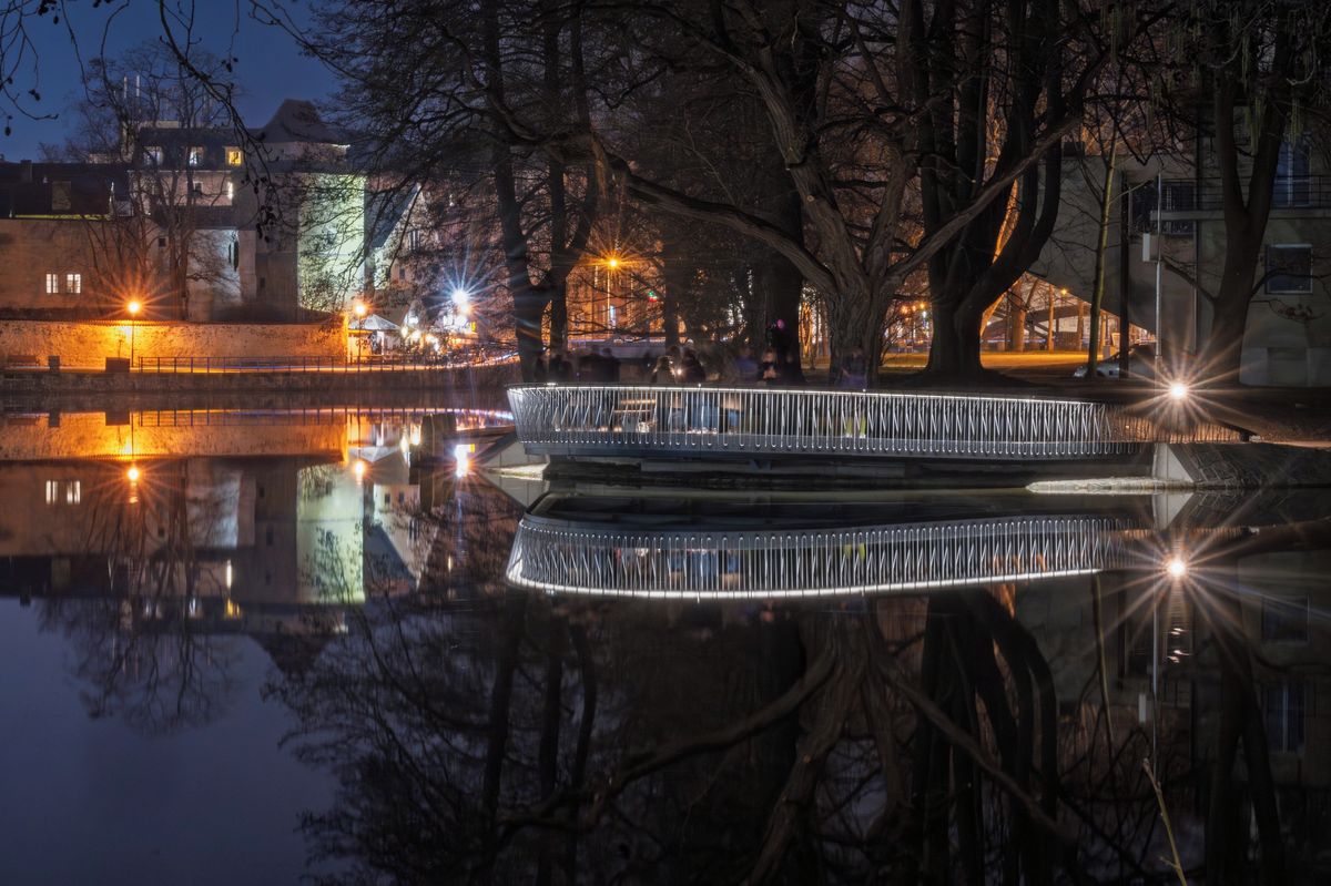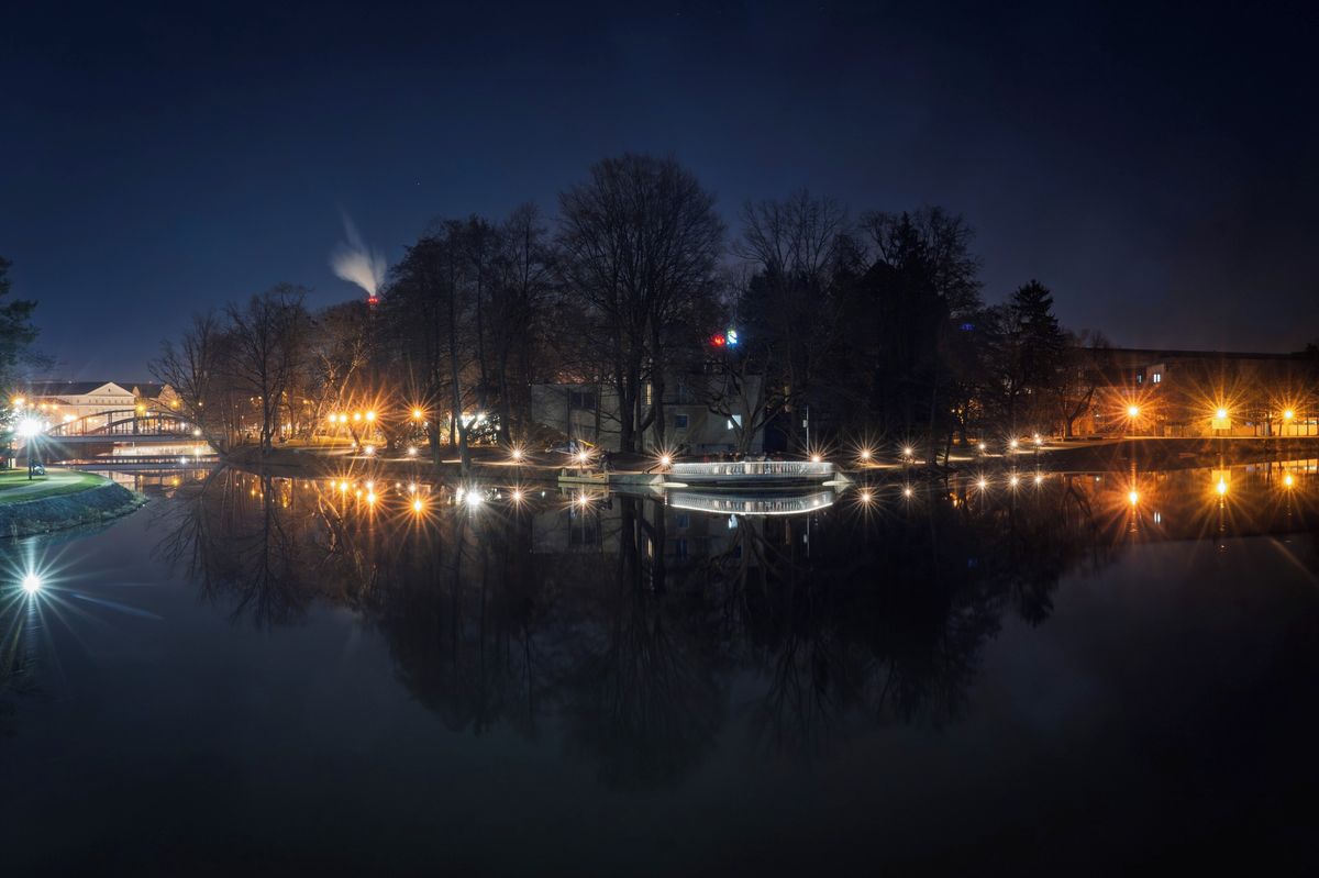Z mola je výhled na obě řeky, ale také historické centrum, Sokolský ostrov s nasvíceným bazénem i další místa.