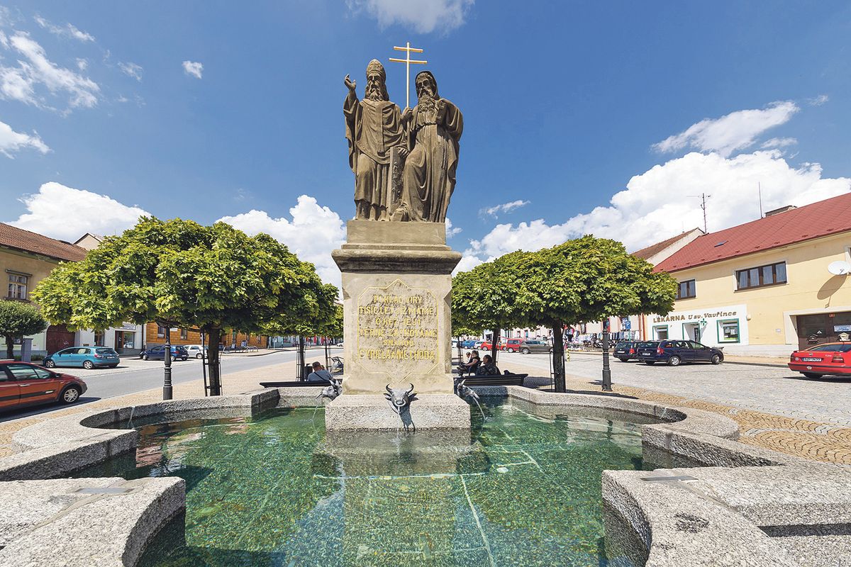 Kašna se sousoším Cyrila a Metoděje v Bystřici nad Pernštejnem