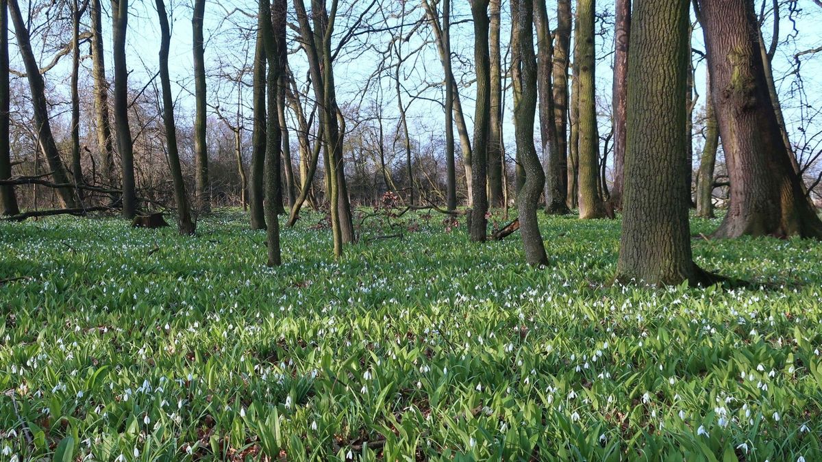 Jedním z mnoha důvodů vyhlášení rezervace byly i sněženky, díky nimž Poodří každé jaro zcela zbělá.