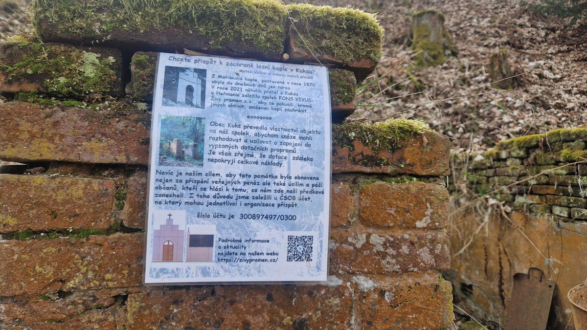 „Pokud bychom se do záchrany nepustili, tak kaplička za několik let zmizí úplně, pramen zanikne a nikdo si už ani nevzpomene, že tu kdysi něco stávalo,“ dodala.