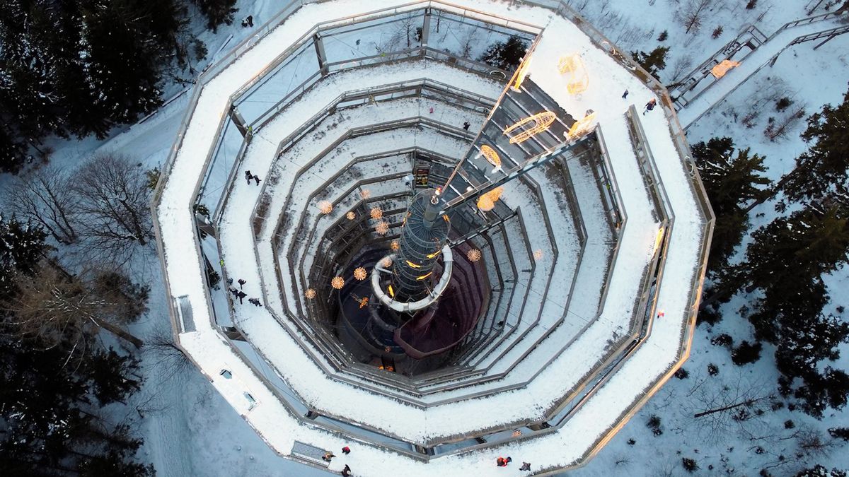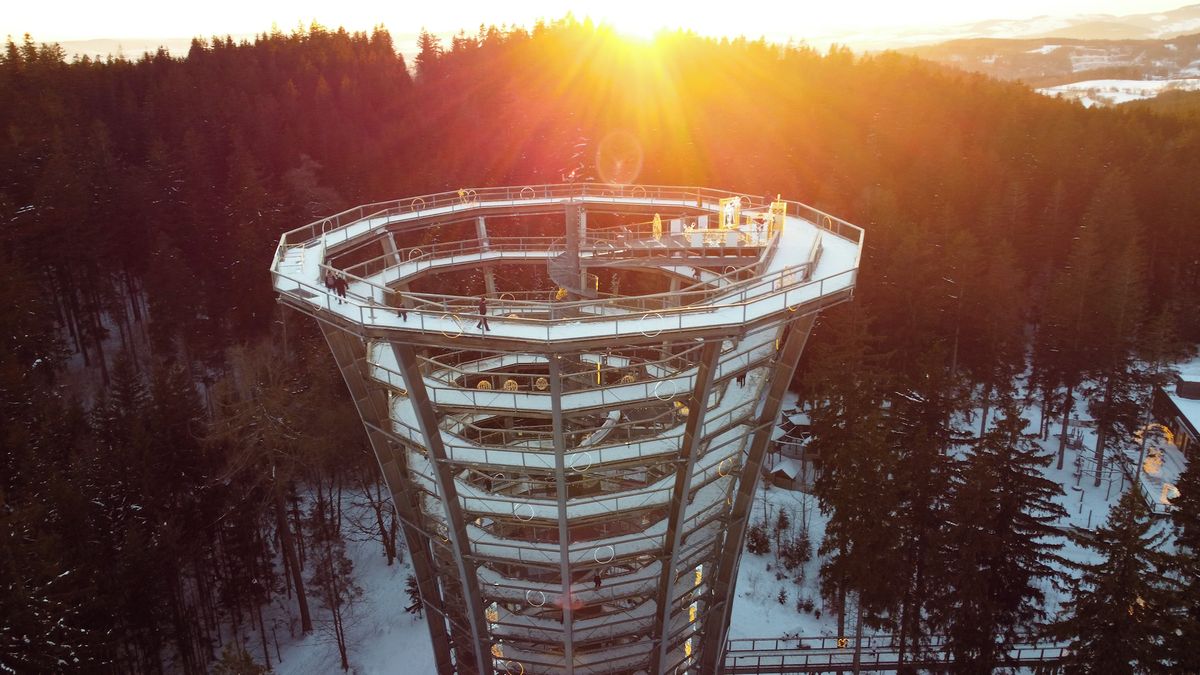 Bez komentáře: Zimní Stezka korunami stromů z ptačí perspektivyVideo: Michaela Bartošová, Novinky