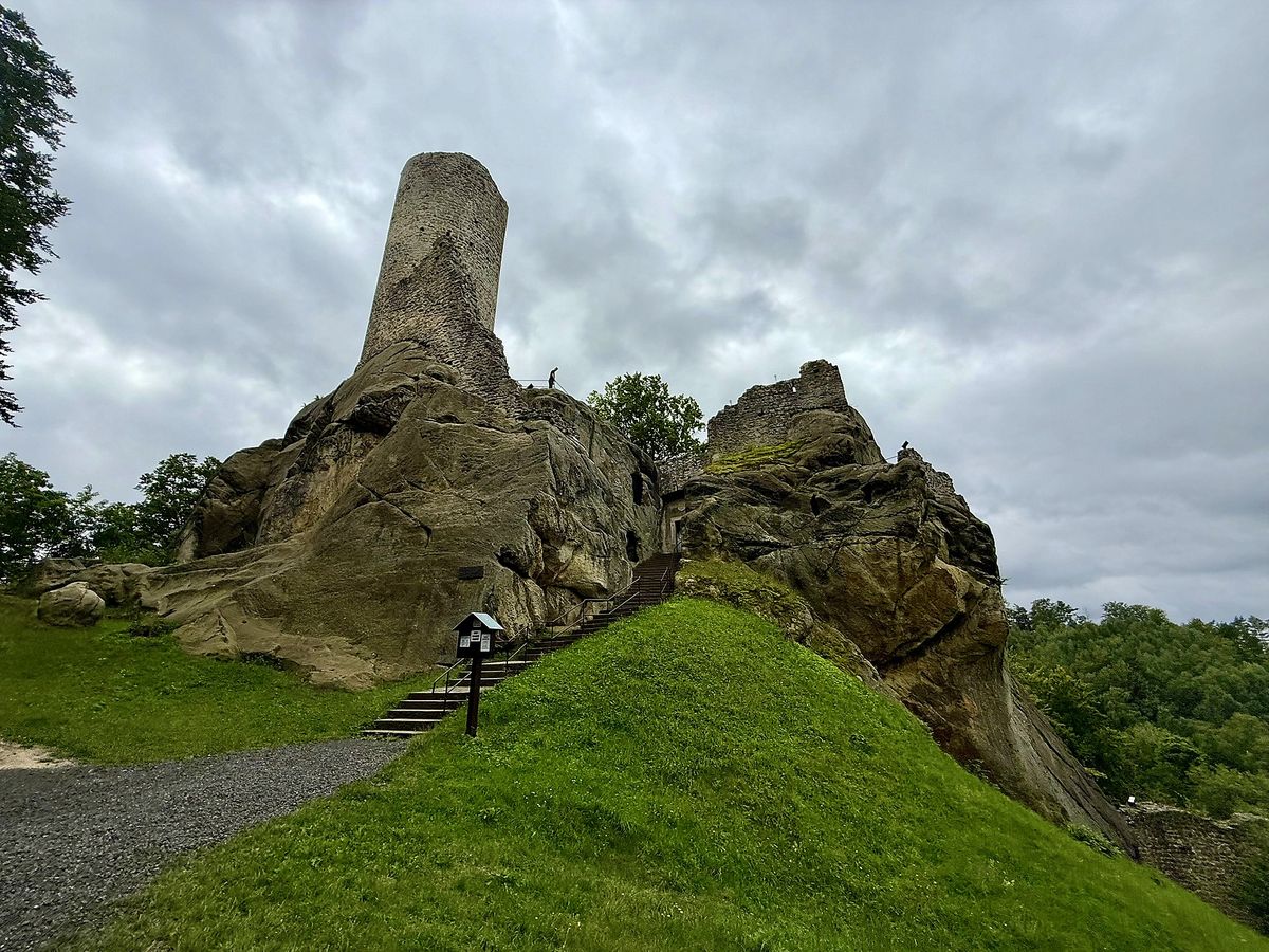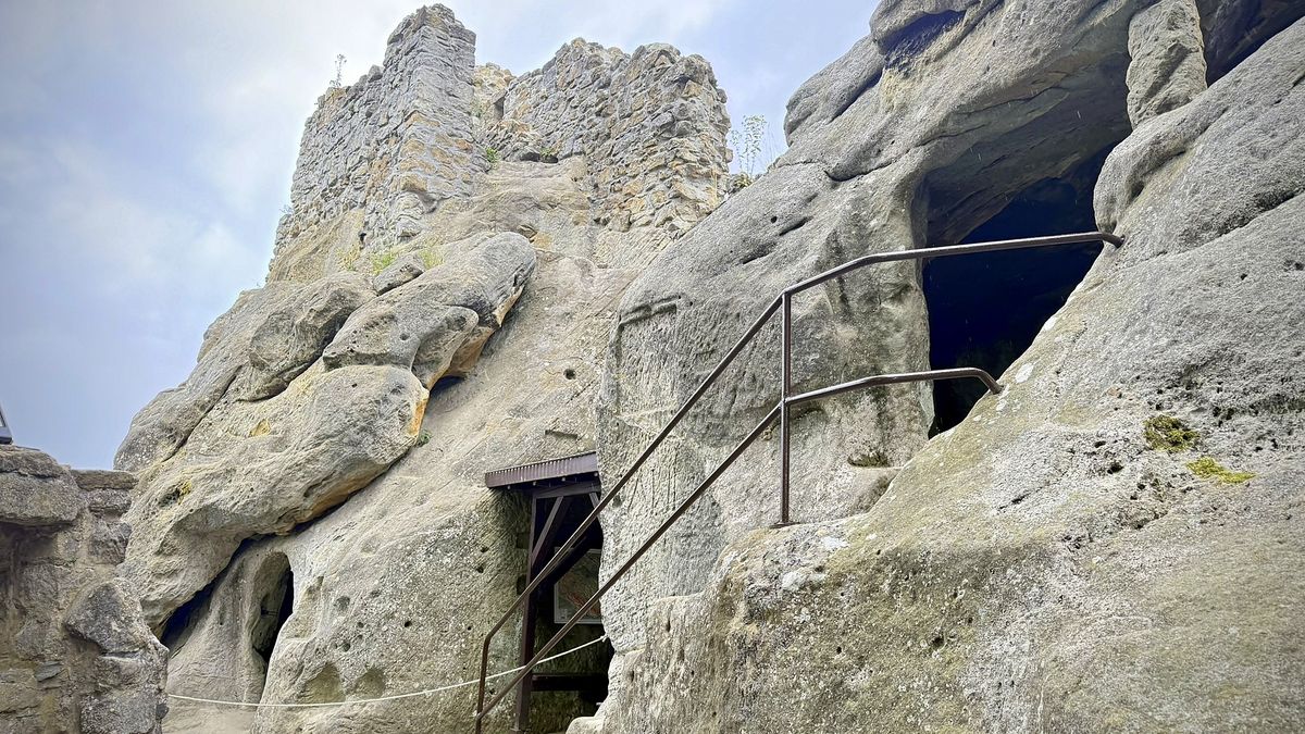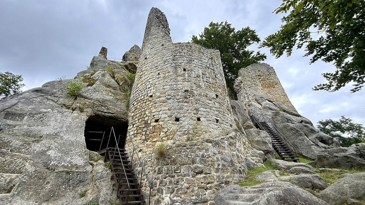 Nejzachovalejší částí skalního hradu je 15metrová věž s průměrem 9 metrů, do níž lze vystoupat a prohlédnout si široké okolí. Ve skále pod věží je vytesáno množství světniček, z nichž jedna sloužila jako kaple. Můžete v nich zhlédnout i model, jak hrad vypadal v dobách největší slávy. Vpravo od věže stával palác, kde sídlil hradní pán.