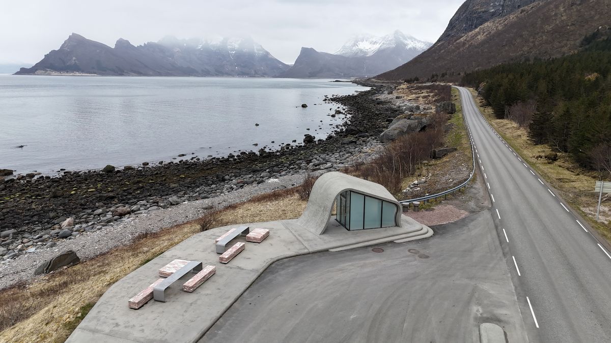 Výlet uzavíráme na Ureddplassen. Potopená ponorka, beton a moře. Elegantní betonová vyhlídka získala celosvětovou pozornost, když ji britský deník The Telegraph označil za „nejkrásnější záchodky světa“. Díky poloprůhlednému sklu vypadají pokaždé jinak – ve dne, v noci, v zimě i v létě.