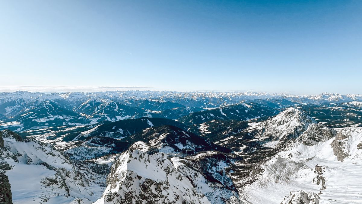Panoramata jsou na Dachsteinu prvotřídní, za dobré viditelnosti lze dohlédnout až do Česka, konkrétně na Šumavu. Mně docela stačí i ty okolní vrcholky, kterým zima propůjčuje opravdu slušivý kabátek. Na schodech do nicoty, anglicky se jim říká Stairs to Nothingness, má člověk skoro pocit, že se nad horami vznáší.