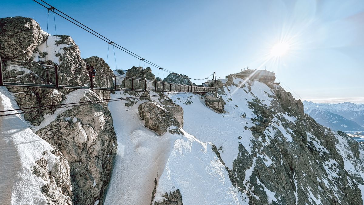 Impozantní Dachstein je se svými 2995 metry nejvyšší horou Štýrska a samozřejmou dominantou regionu Schladming-Dachstein. Zatímco v létě se musejí mít turisté na pozoru, aby je silné horské slunce nesežehlo, v zimě je úhlavním nepřítelem opravdu ostrý a ledový vítr. Tomu se zejména na sto metrů dlouhém visutém mostě nelze vyhnout, lávku dokáže pěkně rozhoupat. Štěstí, že je stavěná na to, aby odolala větru o rychlosti až 250 kilometrů v hodině, což už je regulérní orkán.