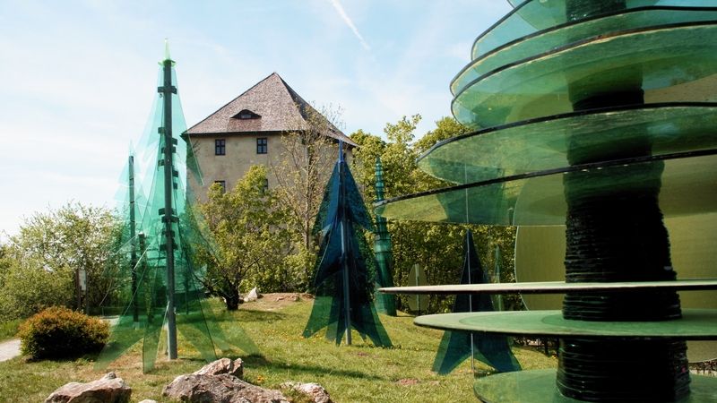 Právě v jeho parku se pak rozprostírá skleněná zahrada, která je domovem mnoha uměleckých kousků ze skla. Své výtvory zde mají i čeští umělečtí skláři.