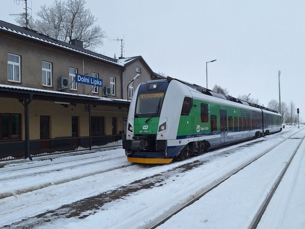 V Dolní Lipce trať elektrifikovaná není, tady by ekologický vlak musel jet na bateriový zdroj.