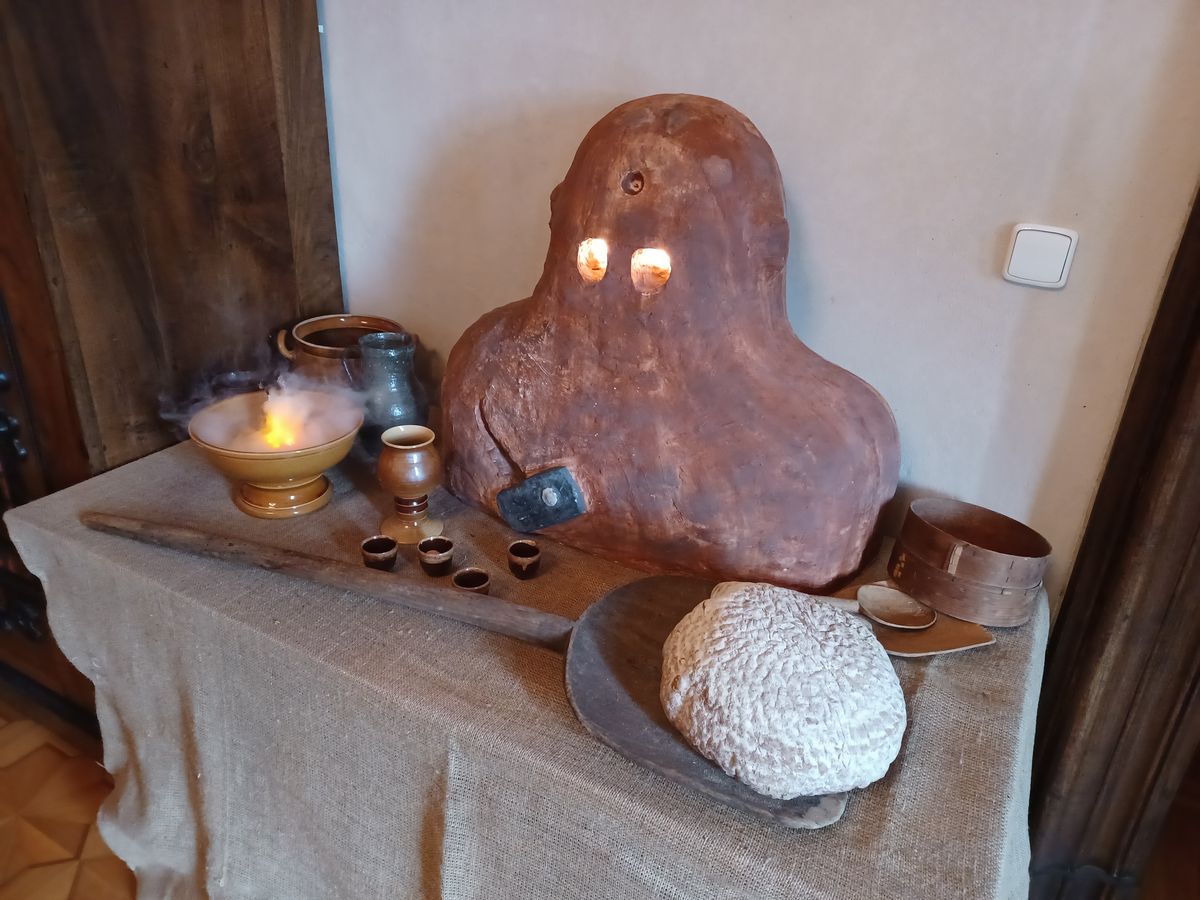 Dalšími vystavenými kousky jsou kostýmy Jiřího Trnky z filmů Císařův pekař – Pekařův císař. Jan Werich jako císař Rudolf II. oblékal kalhoty ze zlaté porty a bílého atlasu, sametový černý plášť a černý taft zdobený bílým atlasem. Tento šat šily švadleny pro Wericha ručně, a to šedesát hodin. „Tuto expozici šatů máme doplněnou golemem, který se dá oživit,“ zve do borovanského kláštera Němcová.
