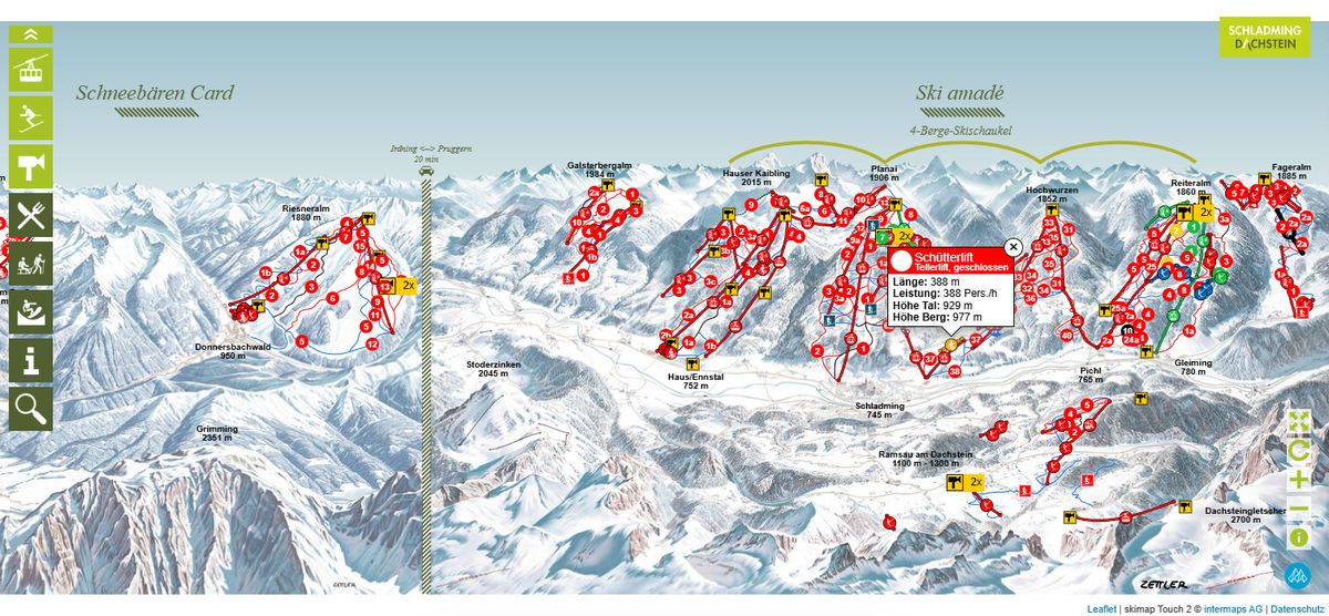 Náhled interaktivní skimapy střediska Schladming - Dachstein