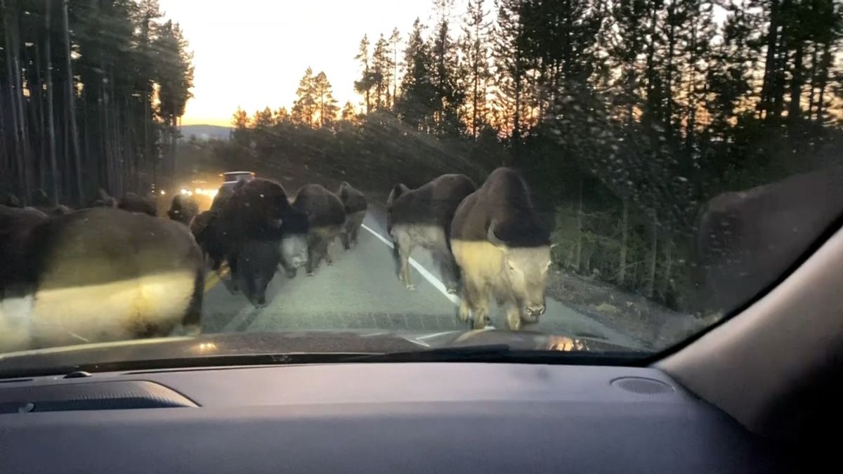 Stádo bizonů zablokovalo dopravu v nejstarším národním parku světa