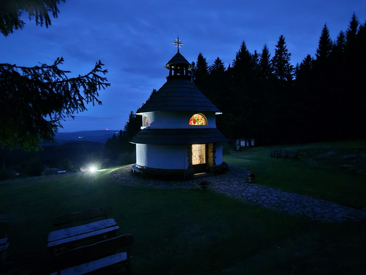 Pokud se na Javorníku zdržíte i po setmění, rozhodně se vám vyplatí vrátit se ke kapli, která je krásně osvětlena nejen zvenčí, ale rovněž uvnitř. Od ní vede směrem k rozhledně nová křížová cesta, postupně budována Nadačním fondem Karla Klostermanna.