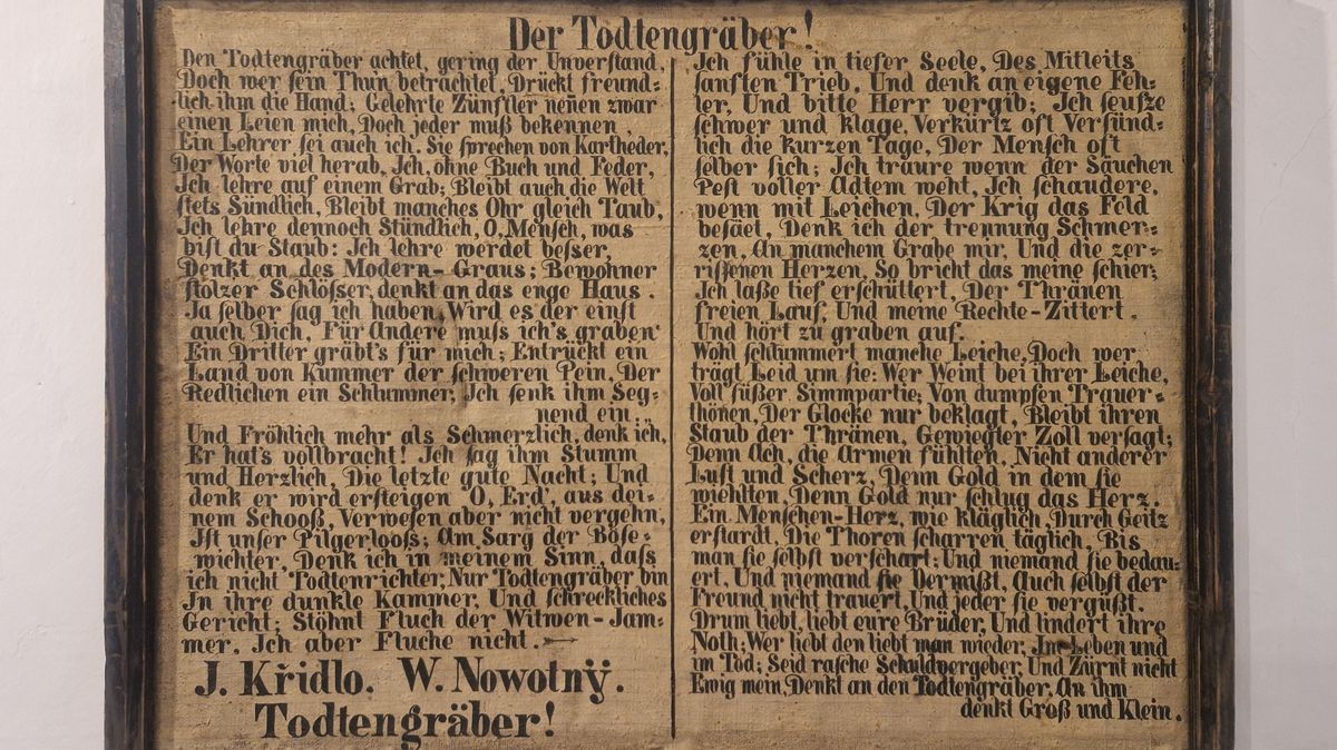 Jak se v trutnovském muzeu shodují, hřbitovní téma nebývá při pořádání výstav obvyklé, ale i hřbitovy a vše, co s nimi souvisí, jsou součástí naší minulosti. V tomto případě pečlivě a skutečně podrobně zmapované. Nechybí ani ukázky smutečních oznámení významných osobností. Mezi nimi vyčnívá i jedno rudé, odkazující se k proletářskému prostředí, z něhož zesnulý pocházel.