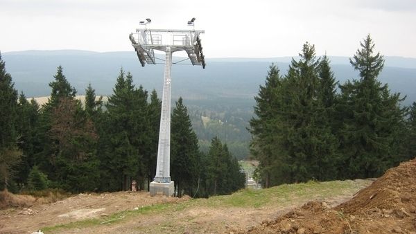 V blízkosti vrcholu Šerlich v Orlických horách se staví moderní lanovka