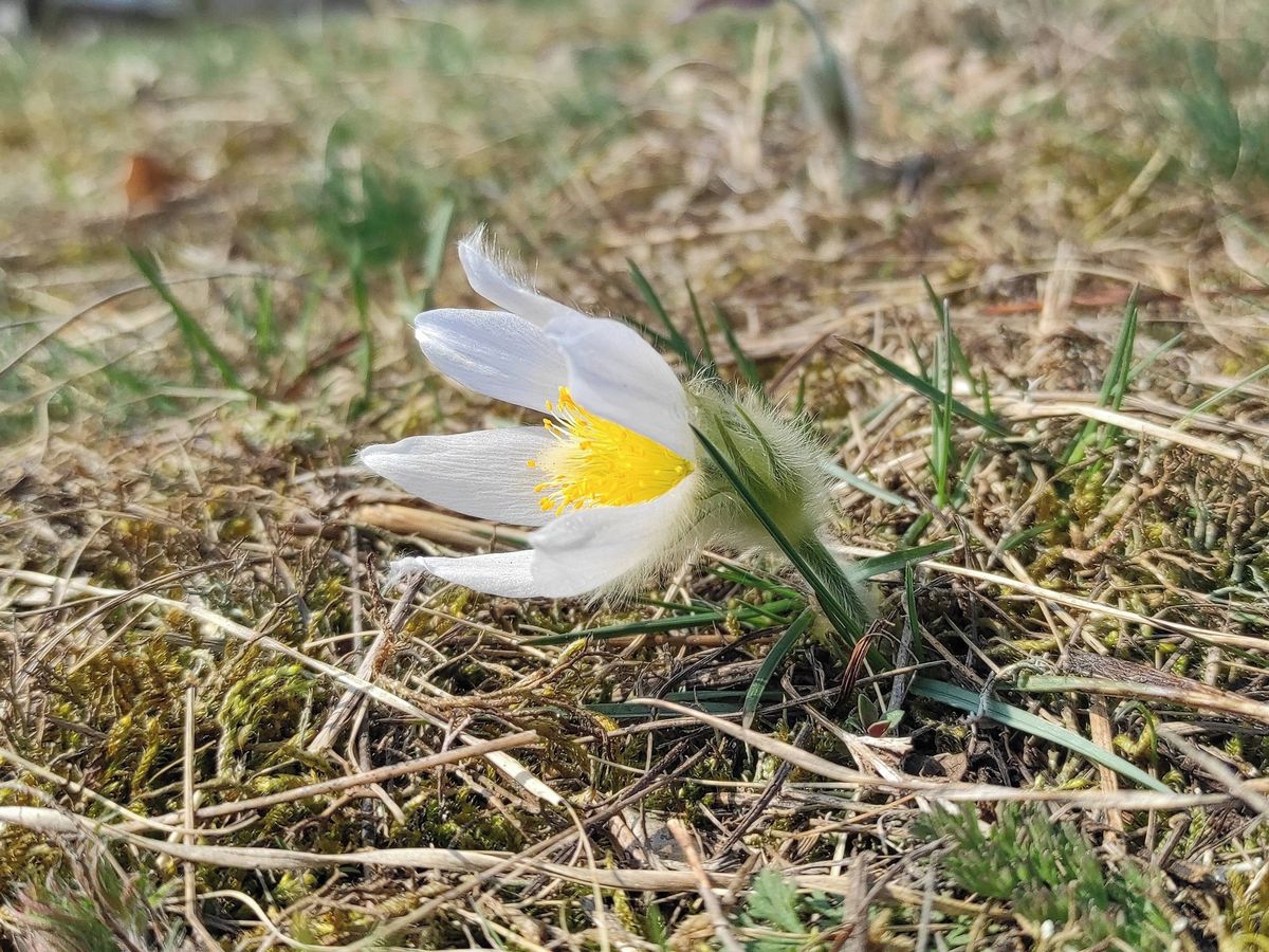 Bílá varieta koniklece velkokvětého z brněnského Kamenného vrchu
