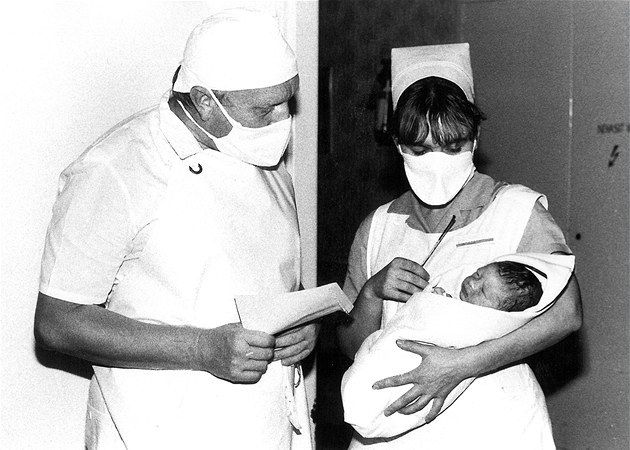„Pacientka celou dobu ležela u mě na oddělení. Porod byl naplánovaný na 4. listopadu. Já jsem si předtím zvrtl kotník, tak jsem ještě to dopoledne dostal sádru. Přiběhl jsem se sádrou na porodní sál, kde byl profesor Pilka, staniční sestra a já jsem to fotil,“ vzpomíná Ventruba.