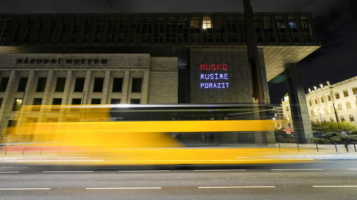 Nápis střídající se s modro-žlutou vlajkou promítali aktivisté z Washingtonské ulice pomocí laserů na Novou budovu muzea. Na fasádě se projekce objevila krátce po 19. hodině a k vidění tam byla necelou půlhodinu.
