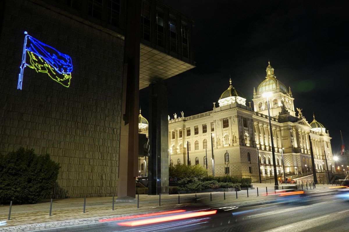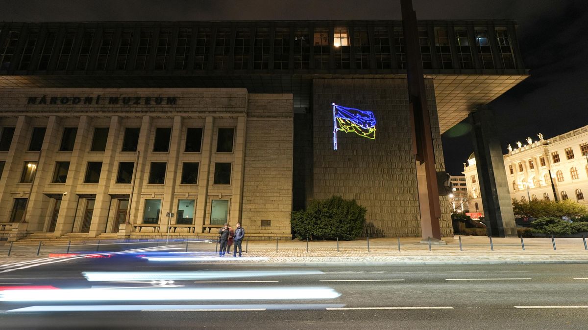 Laserová akce měla připomenout výročí ruské invaze, apelovat na české i evropské politiky, aby nepolevovali v podpoře Ukrajiny a vyzvat je také k zásadnímu posílení finanční podpory Ukrajiny.