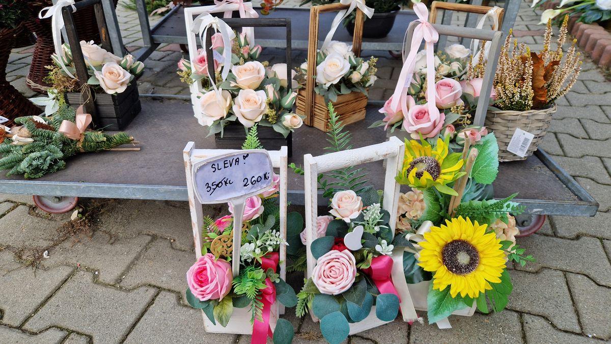 Květiny nakoupily u polské prodavačky na tržnici v Chalupkách, paní Magdy. „Hlavně Češi u mě nakupují. Jezdí jich hodně, mám tady pro ně velkou nabídku. Ale na tržnici v sousedním Zabelkově toho je ještě více, ale také více lidí. Mám tady květinové dekorace za 150, 200, 250 i 300 korun,“ vytahuje květináče Magda.
