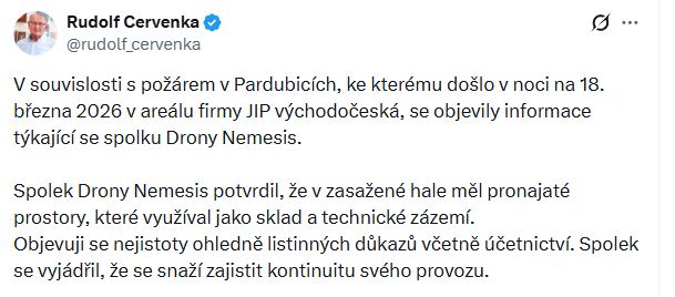 „Skupina D z.s., která je autorem projektu Drony Nemesis, nikdy neměla v Pardubicích pronajatý žádný prostor ani skladovací. Stejně tak nikdy nespolupracovala se společností LPP Holding,“ reagoval na to jeden ze zakladatelů spolku, bezpečnostní analytik Milan Mikulecký.