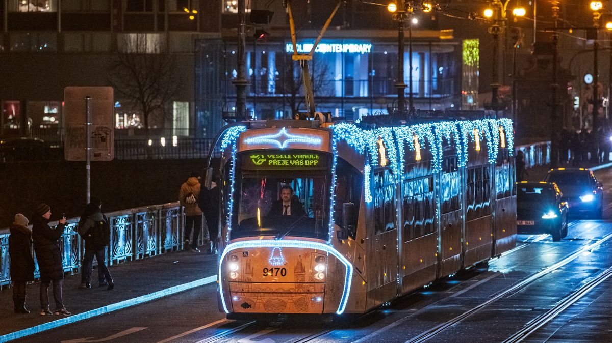Pražský dopravní podnik (DPP) letos vyzdobil celkem 11 vozidel a mají v nich také při jízdě hrát koledy.