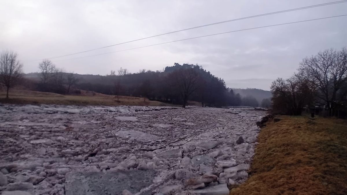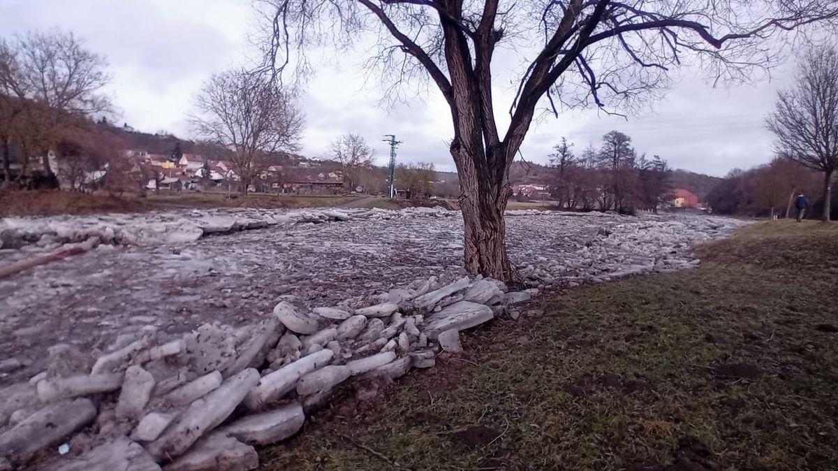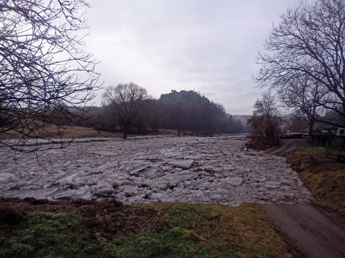 Koryto řeky Oslavy bylo zaplněno ledem. Uvolnit jej museli vodohospodáři.