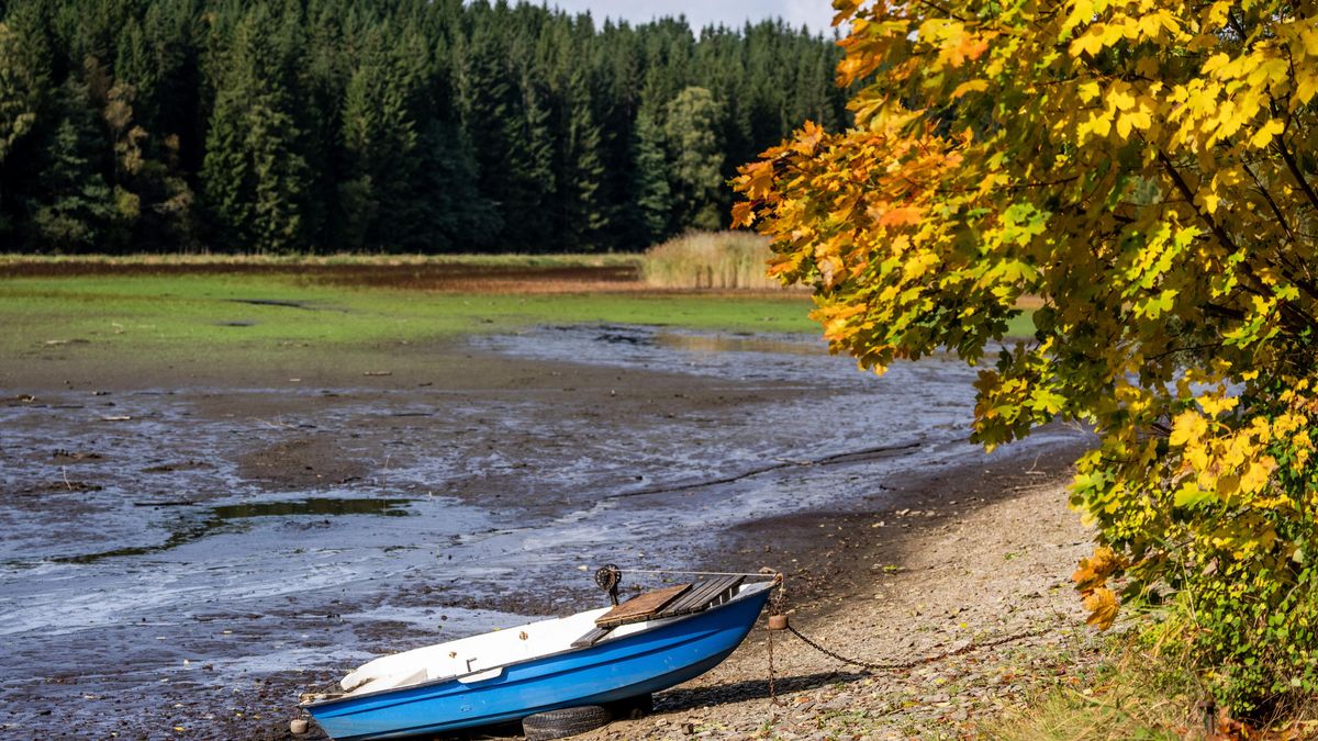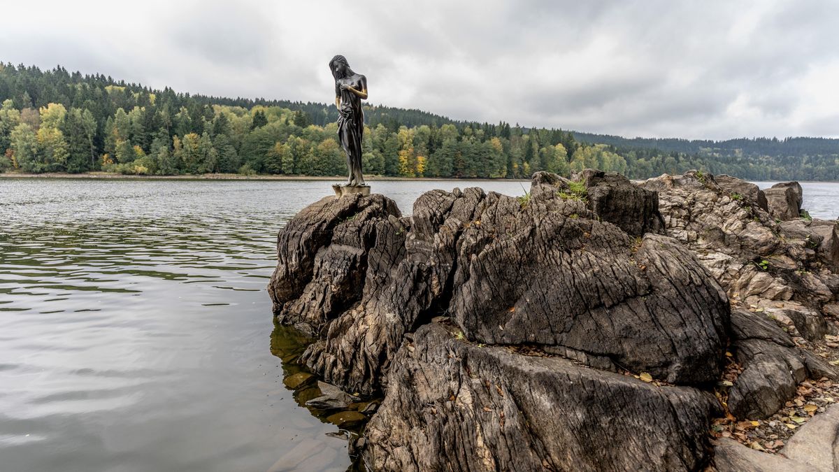 FOTO: Nedostatek vody v Lipenské přehradě. Socha víly je dva metry nad hladinou.