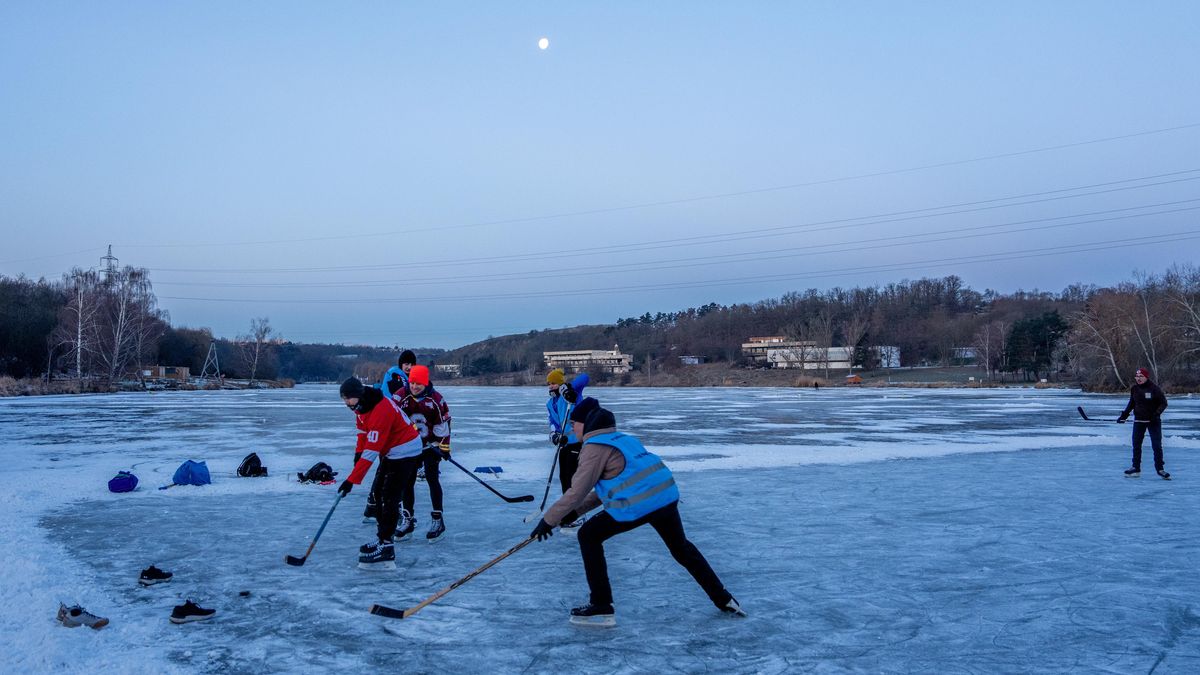 Současné mrazivé počasí přeje pohybu na čerstvém vzduchu. Zamrzlá přehrada Džbán v Praze, ještě za hluboké tmy, slouží jako hokejové hřiště i bruslařská dráha. Kdo chce sportovat venku, může vyrazit i na Kyjský nebo Hamerský rybník.