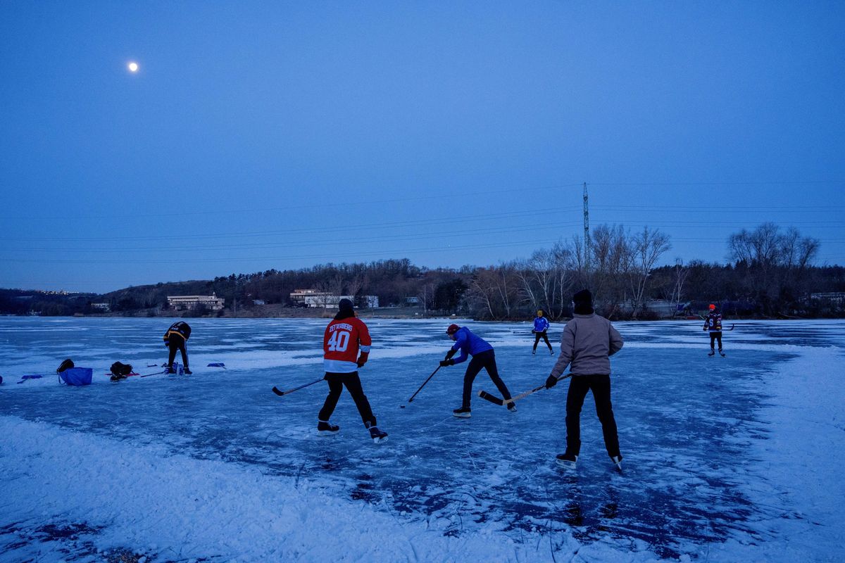 FOTO: Přírodní bruslení. V Praze se hraje hokej i za svitu měsíce.