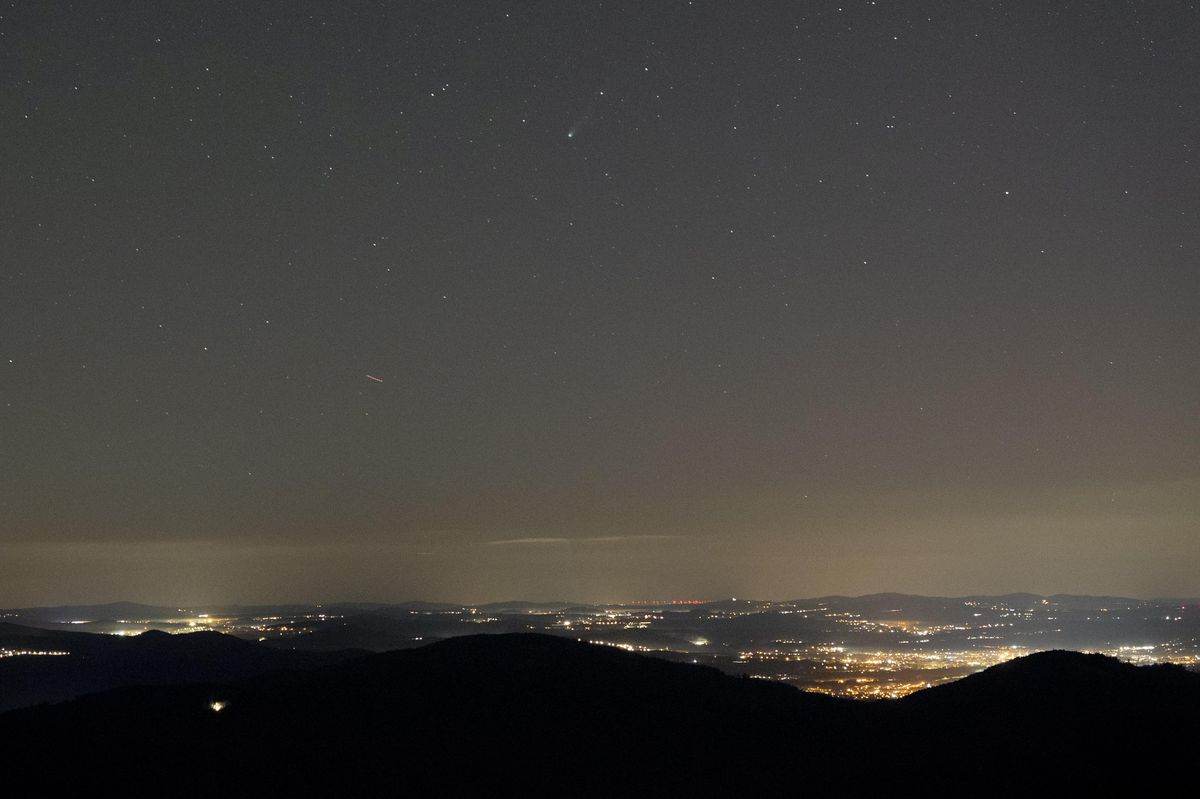 Kometa Lemmon na noční obloze