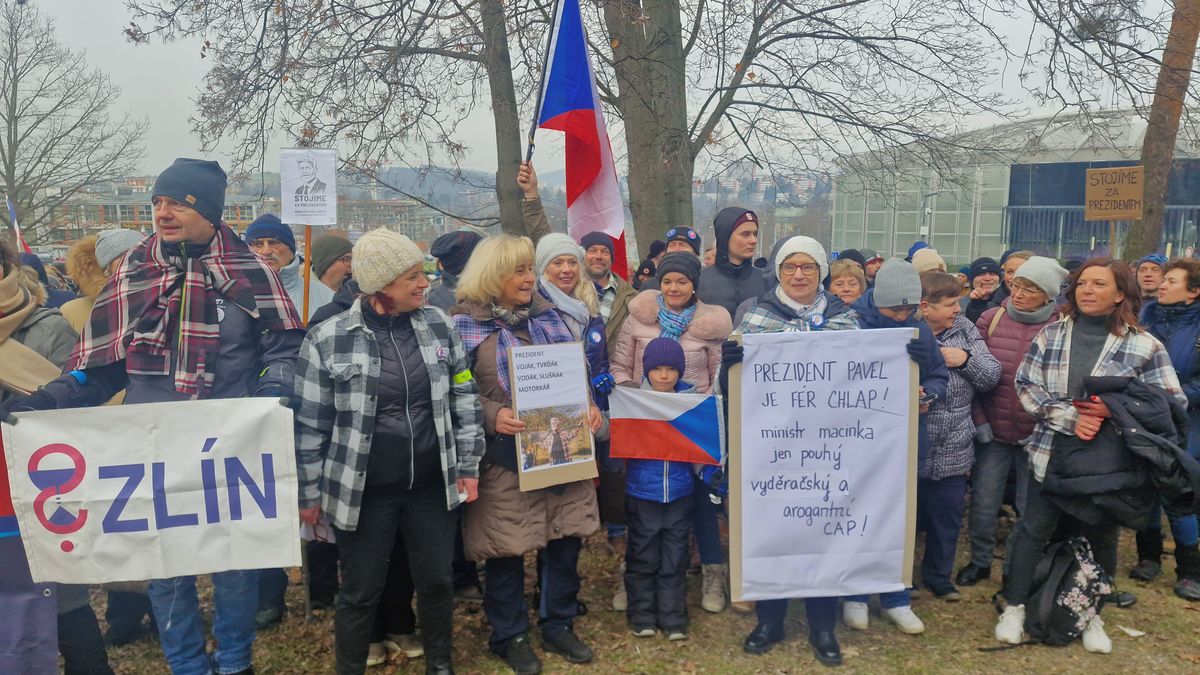 „My přijeli až z Ostravy. Do Prahy nám to přišlo daleko. Během dopoledne jsme zjistili, že je demonstrace i v Kyjově na Slovácku. A když jsme vyrazili, dostali jsme info o Uherském Hradišti a nakonec jsme skončili ve Zlíně. Za což jsem rád. Narodil jsem se tu a už třicet let jsem do rodného města nezavítal. Až nyní, jak symbolické, asi v pravý čas. Pan prezident má naši plnou podporu,“ uvedl další z demonstrujících.