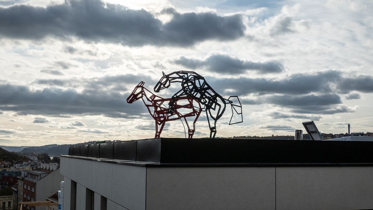 Kdo v několika posledních dnech kráčel dolů po Podolských schodech, nemohl si nevšimnout nové instalace na rozestavěném domě v sousedství. Střechu, odkud je výborný rozhled do okolí, ozdobila rozměrná železná socha dvou koní zachycených při „intimní chvilce“. V černé barvě je zde vyveden bájný Šemík, v červené pak kobyla.