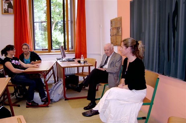 Tom Schrecker při jedné z debat na třeboňském gymnáziu