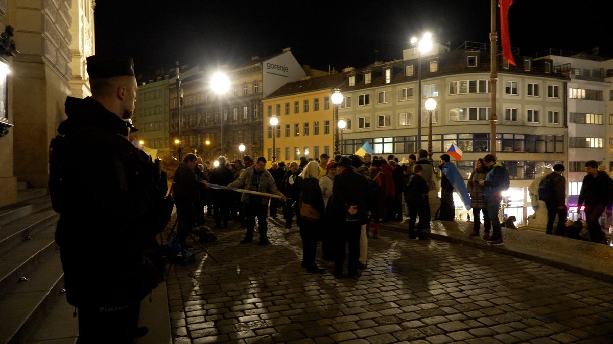 Podobně mluvili i mladí muži, kteří dorazili s ukrajinskými vlajkami. „Mně přijde důležité, zvlášť v této době s vznikající novou vládou, podporovat Ukrajinu a dávat najevo solidaritu. Pokud Ukrajina padne, budeme my v Evropě ve velkém nebezpečí,“ řekl jeden z nich.