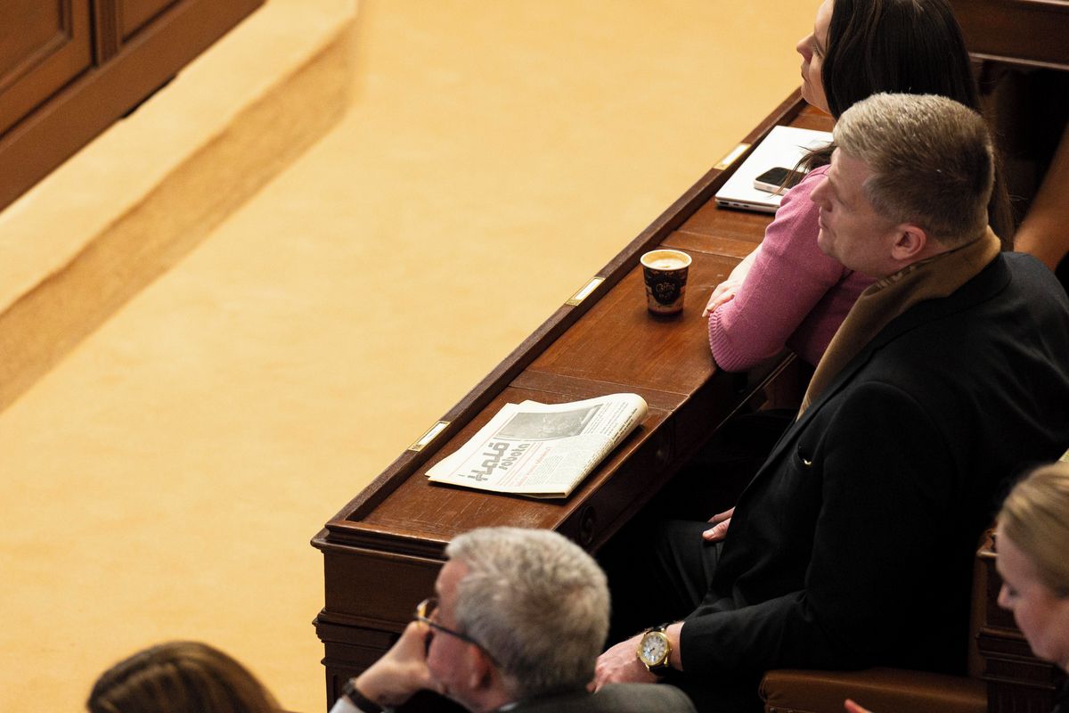 Kvůli rozhodnutí hlavy státu nejmenovat čestného prezidenta Motoristů sobě Filipa Turka ministrem životního prostředí, „hrozil“ před časem Macinka prezidentovi „extrémní kohabitací“. Poslanec Turek si na úterní schůzi shodou okolností přinesl přílohu Rudého práva Haló sobota z téhož dne.
