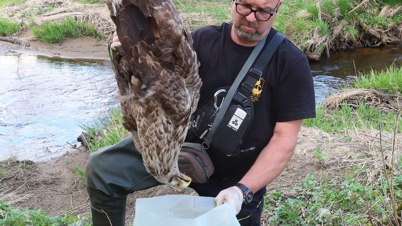 A jeho ornitologický kroužek prozradil dvě fakta. „Bylo mu deset, takže teprve teenager, orli mořští se dožívají i sedmdesáti let,“ řekl Novinkám Karel Makoň z plzeňské záchranné stanice živočichů. „Kroužkovali jsme jej v květnu 2016 na hnízdě nedaleko Boru u Tachova. Orli si ho tenkrát postavili na ohnuté borovici a když k němu kolega vylezl, našel tam kromě dvou mláďat i hororovou hlavičku malého dítěte, naštěstí byla jen z panenky,“ připomněl Makoň.