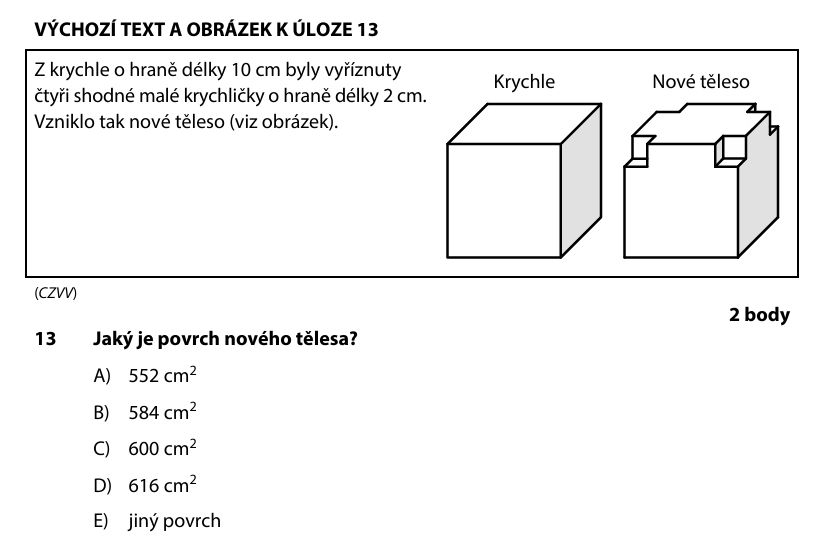 Za příklad „přemýšlecí“ úlohy uvedl pondělní číslo 13, tedy výpočet povrchu tělesa, respektive krychle. „Žák, který to počítal, nemohl uspět, ale ten, kdo si uvědomil, že povrch zůstává stejný, to měl za minutu hotové,“ vysvětlil.