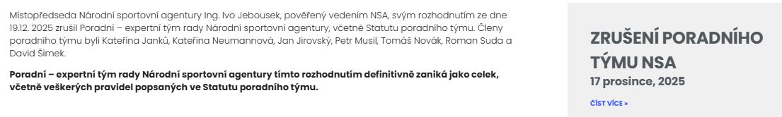 Jeho slova potvrzuje i URL adresa zprávy na stránkách NSA, která stále uvádí informaci o tom, že členové poradního týmu se vzdali funkcí. Rovněž zůstalo i původní datum publikace, tedy 17. prosince. V novém znění stojí, že Ivo Jebousek tým z vlastního rozhodnutí zrušil 19. prosince.