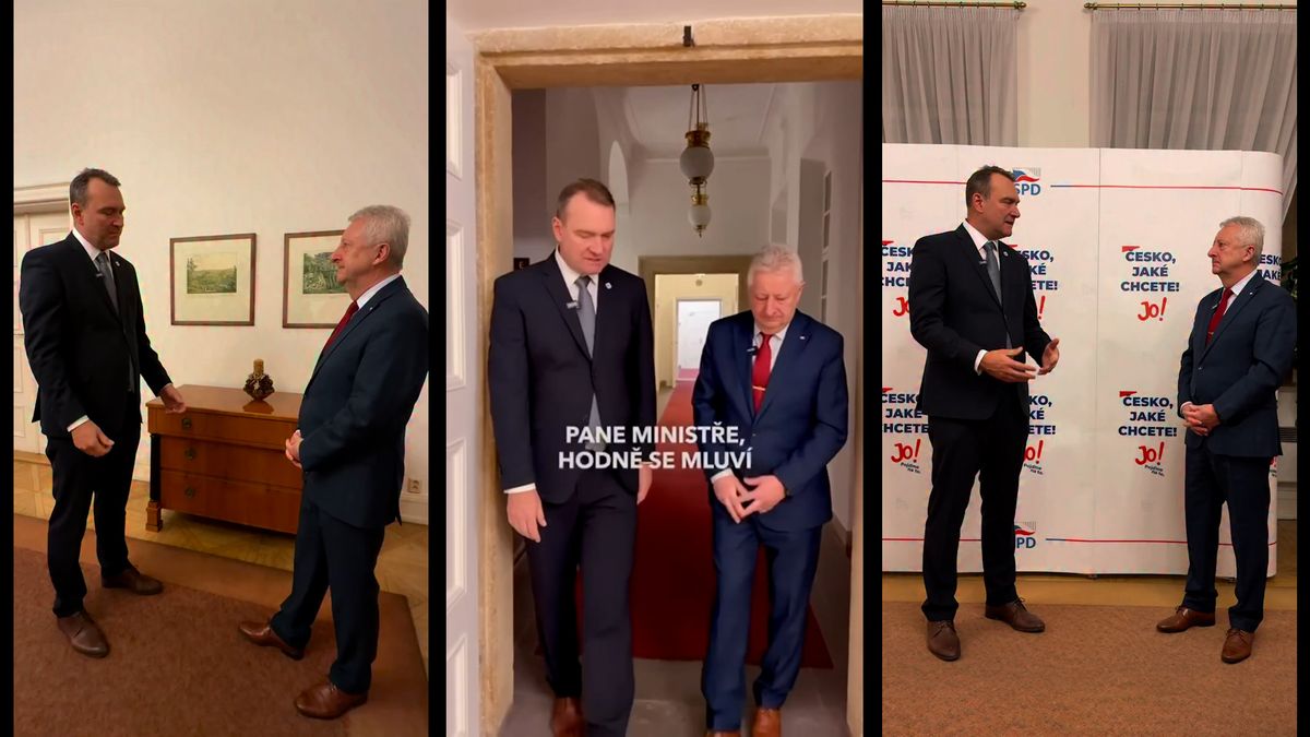 V přibližně půlminutovém videu v režii SPD tentokrát ministr nezmiňuje pokračování muniční iniciativy ani fakt, že Rusko je agresor.
